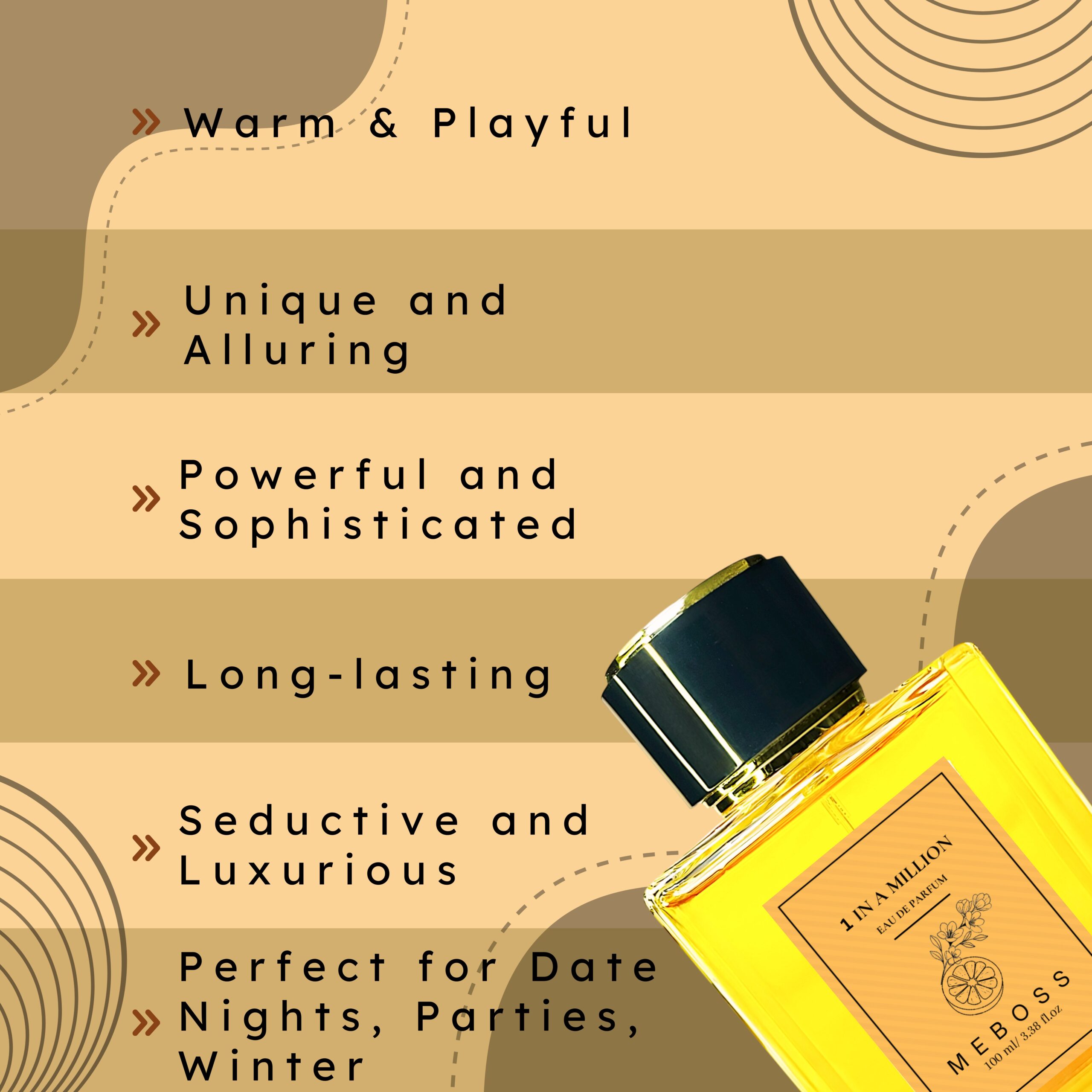 1 in a Million is a bold, seductive fragrance that embodies confidence, luxury, and charisma. This iconic scent features a rich blend of citrus, spices, leather, and warm notes, making it perfect for evening wear and special occasions. The fragrance opens with an energizing mix of fresh citrus and spicy cinnamon, followed by a warm, floral heart of rose absolute and cinnamon, and settles into a smooth, luxurious base of amber, leather, and woody notes. With strong longevity and excellent projection, making it ideal for those who want a fragrance that turns heads and leaves a lasting impression. Its unique blend of strength and seduction makes it suitable for men who want to exude power, confidence, and sophistication.