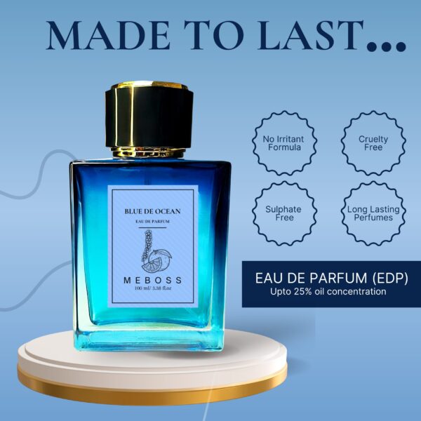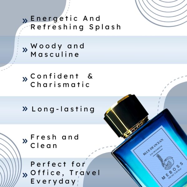 Blue de Ocean is a sophisticated, modern fragrance that embodies the essence of masculine elegance. This woody, aromatic scent combines notes of grapefruit, lavender, and geranium with a rich, woody base of cedarwood, vetiver, and sandalwood, creating a fresh, energetic aroma with a subtle nuance of spices. It is characterized by its crisp, clean character and impressive longevity, making it perfect for formal events, business settings, or evening wear. With its bold, masculine profile, this fragrance is designed for the confident, modern man who values sophistication, refinement, and a sense of freedom, exuding a sense of style and distinction.