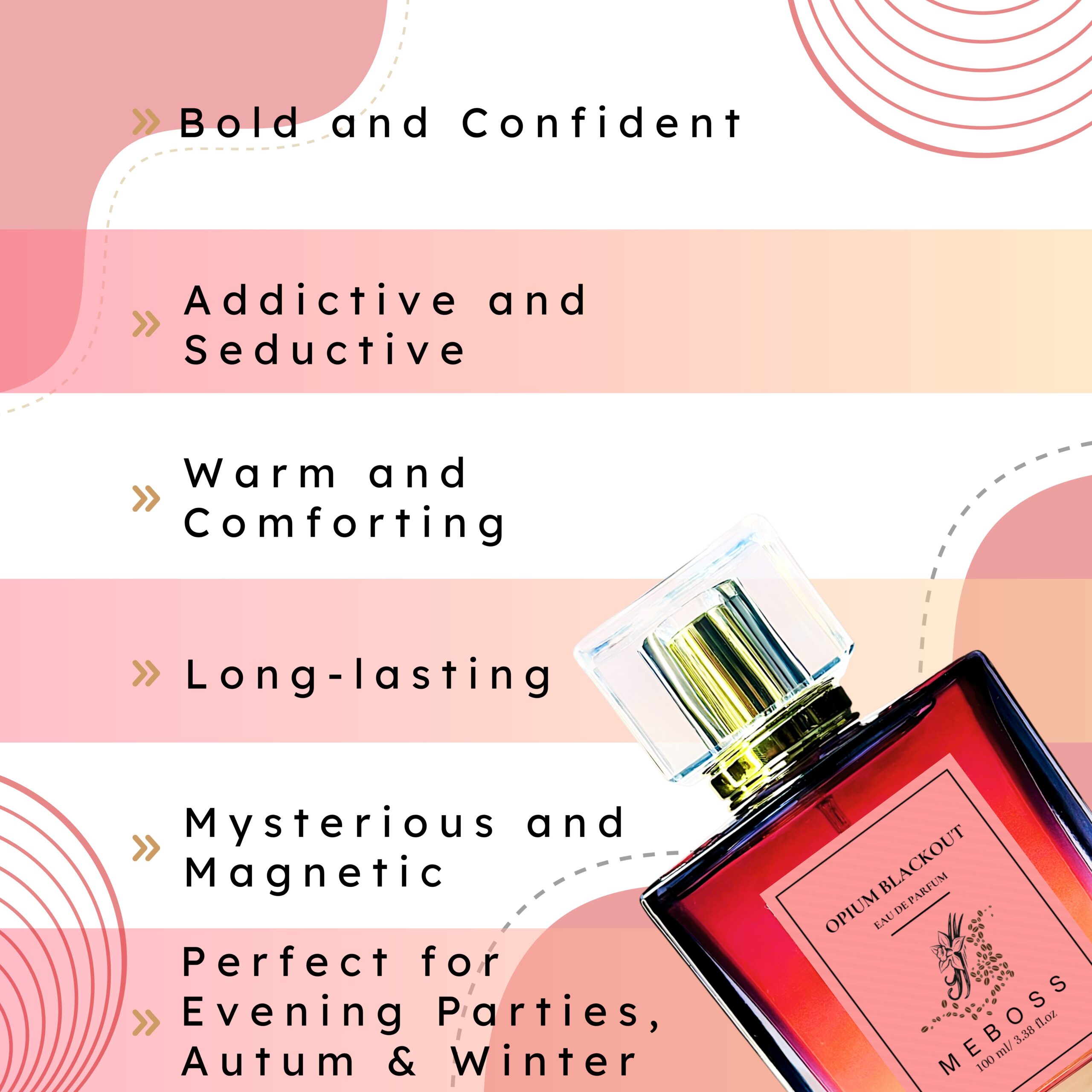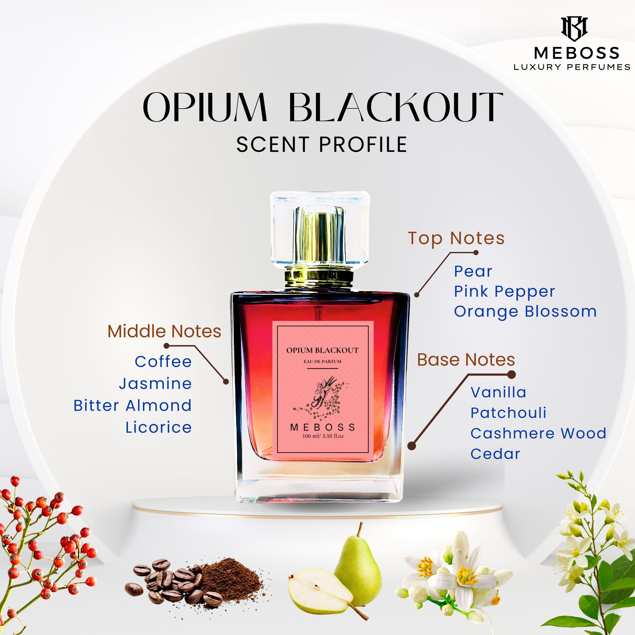Opium Blackout is a captivating, oriental-gourmand fragrance that embodies the essence of modern femininity. This bold, seductive scent combines notes of coffee, vanilla, and white flowers, creating a rich, velvety texture that’s both warm and spicy. The fragrance opens with a burst of pear and mandarin essence, followed by a delicate bouquet of orange blossom and jasmine, and settles into a smooth base of patchouli, vanilla, and cedarwood. With its impressive longevity and moderate to strong sillage, it is perfect for evening wear, exuding confidence, allure, and sophistication. This iconic perfume is designed for the modern woman who dares to live life on her own terms, embracing her boldness and individuality.